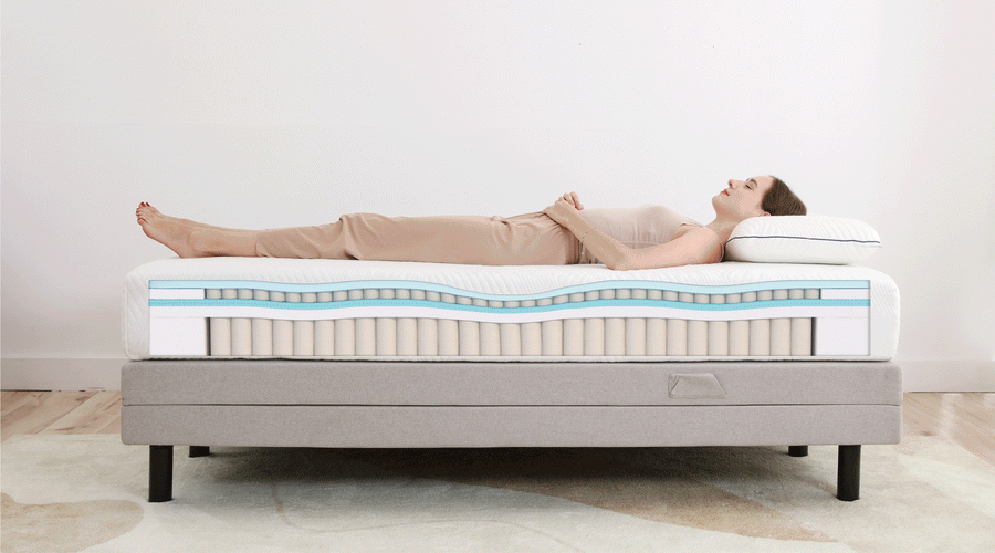 Passt sich präzise dem Körper an, stützt gezielt und isoliert Bewegungen für ruhigen Schlaf. Die offene Struktur fördert die Luftzirkulation – für ein frisches, trockenes Schlafklima.
